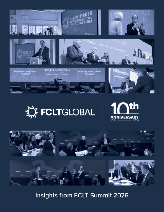 This year, in light of the current uncertainty, this project encapsulates our and our members’ views regarding the most pressing issues confronting capital markets, which we have gathered through peer-to-peer conversations and group discussions at FCLT Summit.